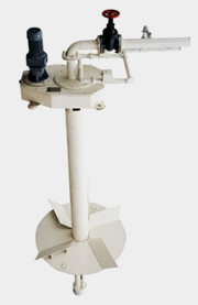 鐘式沉砂池由電動(dòng)機(jī)、減速機(jī)、葉輪主軸、轉(zhuǎn)盤(pán)葉片、空氣提升和空氣沖洗系統(tǒng)、吸砂管及鋼制平臺(tái)、池體(一般為混凝土池,用戶(hù)可選配鋼制池體),轉(zhuǎn)盤(pán)葉片的直徑和高度根據(jù)用戶(hù)的池體訂制。